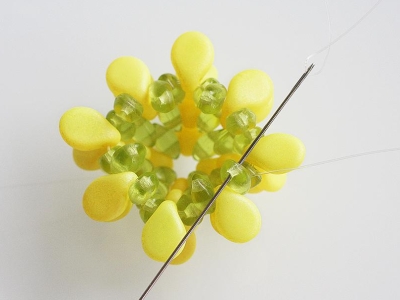 Náhrdelník je složen z mačkaných korálků 5 mm a pěti šitých jednotek, Po ušití 5 ti jednotek navlékněte vše na vlasech, prošijte 2x pro zpevnění.