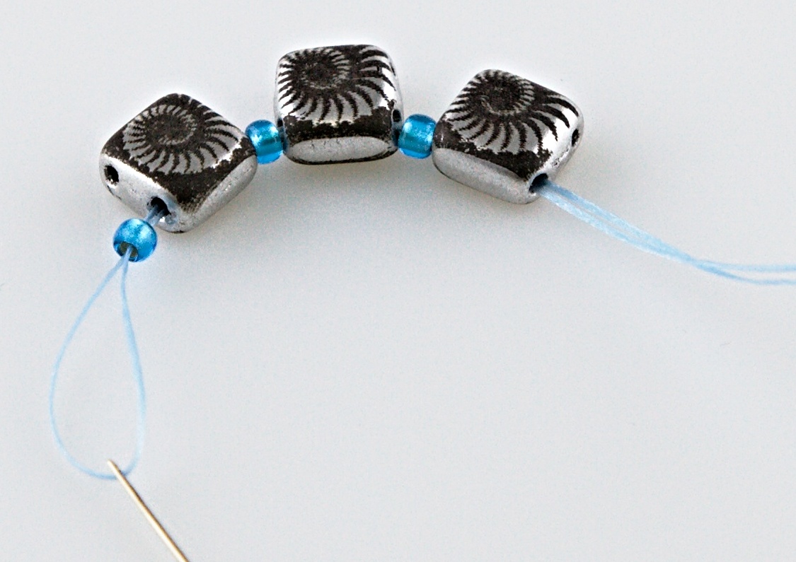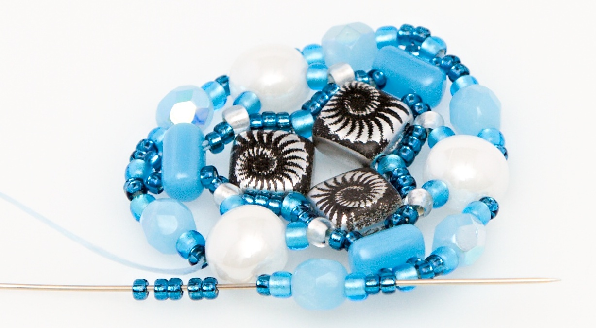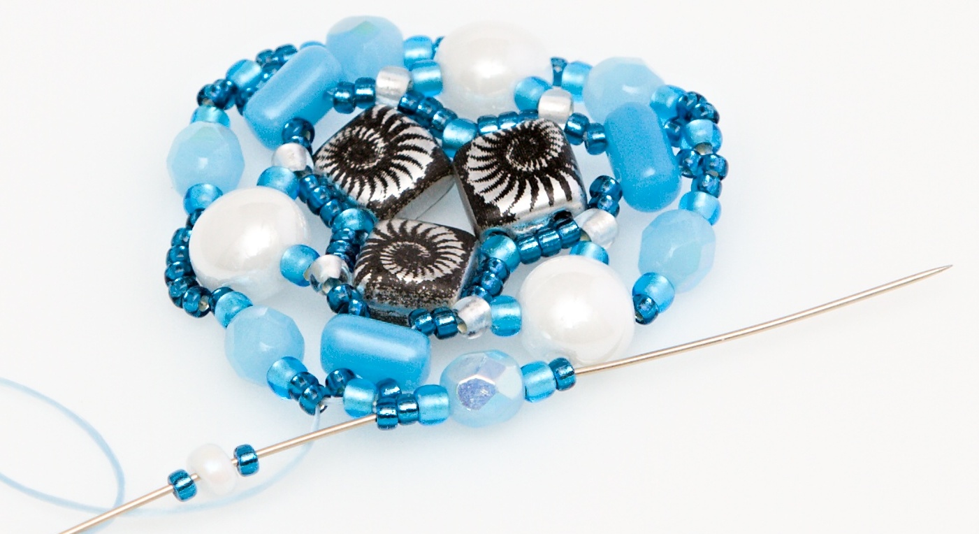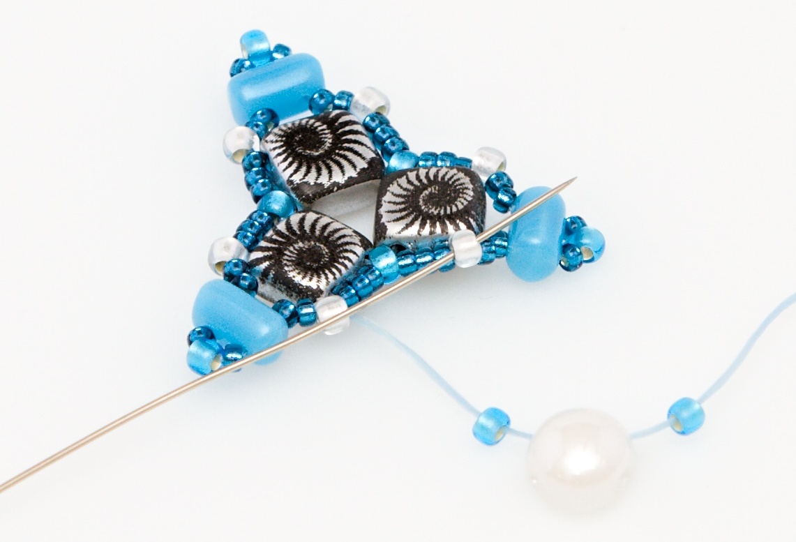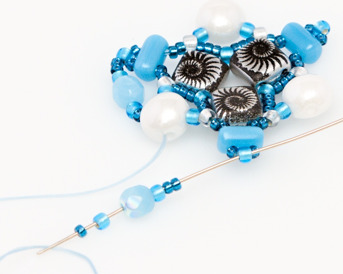 Pomůcky: Korálkovací podložka, Korálkovací jehla, Nymo nebo Superlon (S-lon),