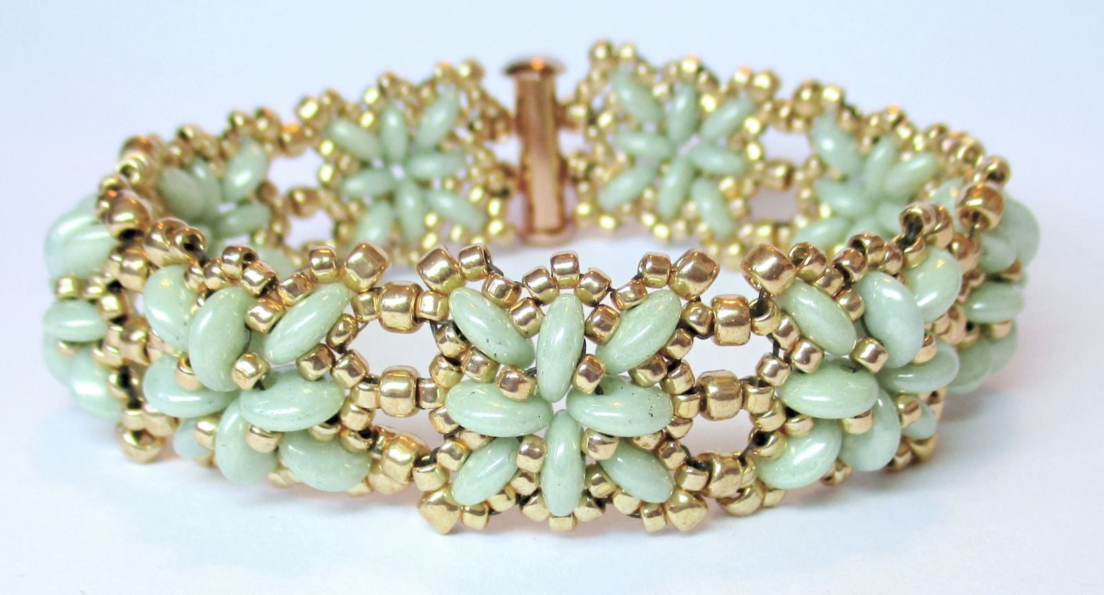ARMBAND C – Zweilochlinse (72 Stück) R11 – Rocailles 11/0 R8 – Rocailles 8/0 Magnetverschluss mit 2 x 2 Ösen |