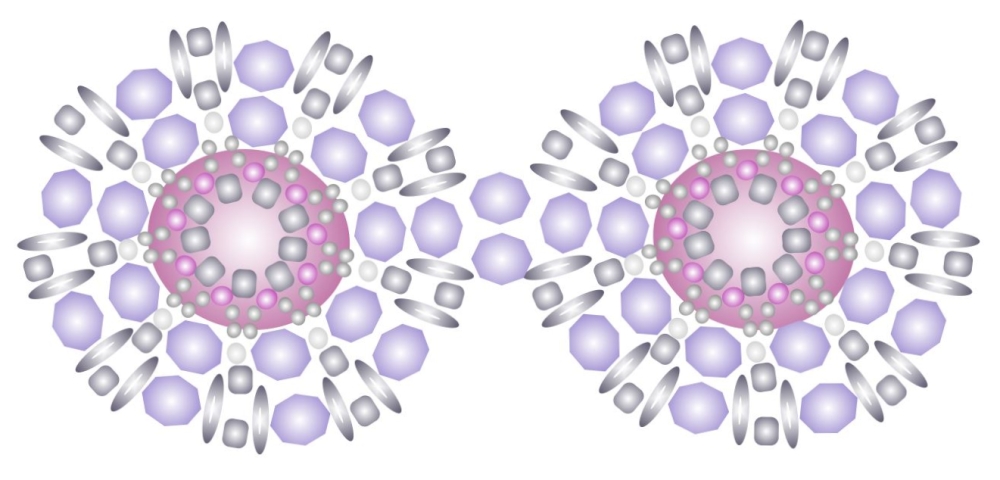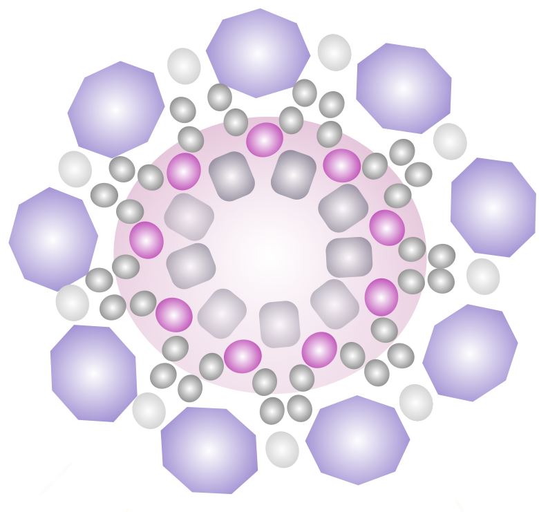 Prošijte R10 v základním kroužku, pak navlékněte 2xR15+1xR9+2xR15, poté prošijte další R10 v základním kroužku. Toto opakujte dokola kroužku.