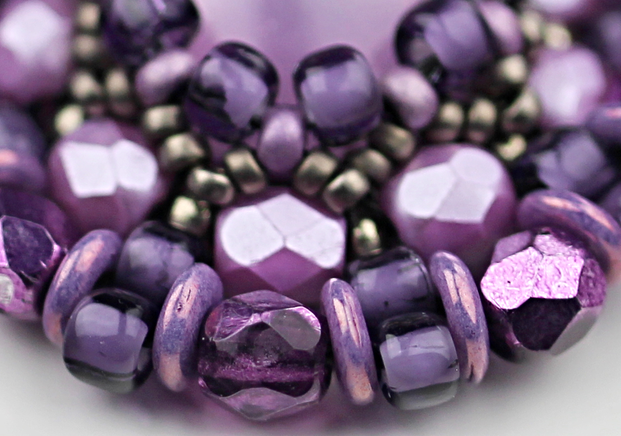 V další řadě mezi O-beads všijte znovu rokajl R8. Opět 2x prošít po celém obvodu. Tím je základní jednotka hotová.