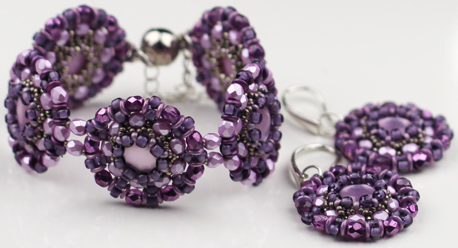 Náramek je vytvořen z 5 jednotek sešitých přes 2 broušené korálky. Toto spojení několikrát prošijte, protože půjde o namáhaný spoj.