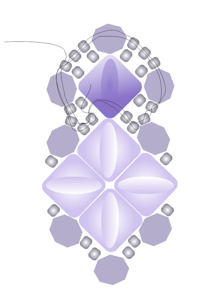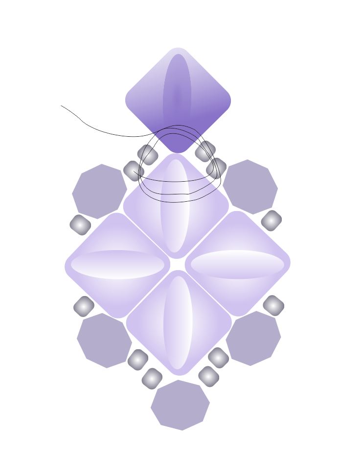 Nyní přišijeme 4 broušené korálky a rokajl po obvodu jednotky, stejně jako v KROKU 2.