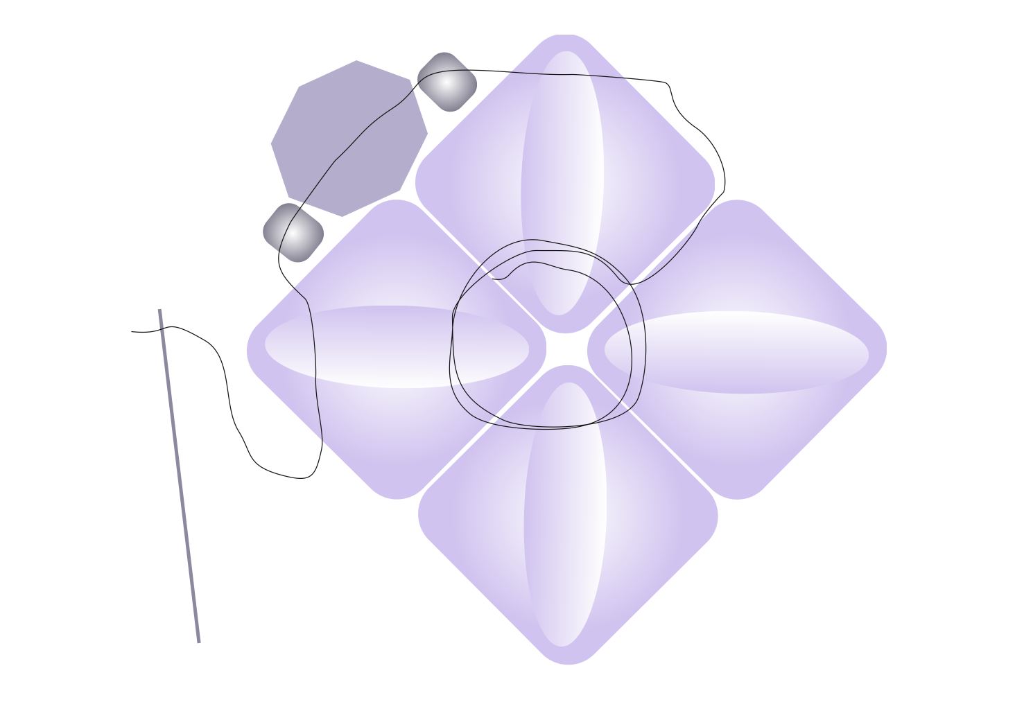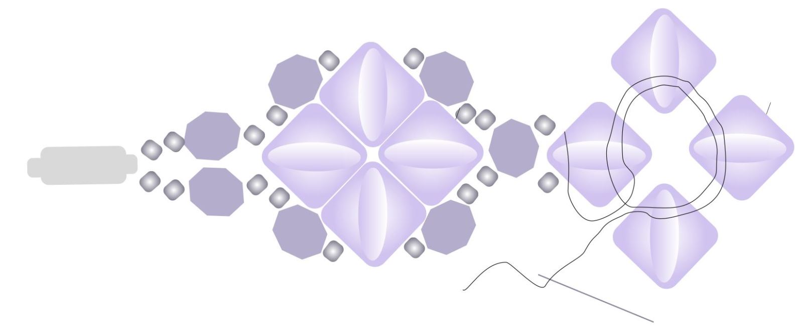 Navlékněte R9+BR+R9 a všijte do vedlejší SBD19. Toto opakujte 4x po obvodu čtverce. Vše prošijte 2x.