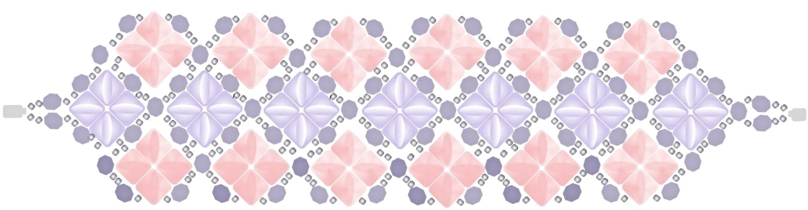 Středovou část náramku tvoří 7 jednotek, opakujte tedy kroky 5 až 8. Výsledná délka náramku se sedmi jednotkami je 17 cm. Pokud máte silnější zápěstí, udělejte v základní řadě 8 jednotek. Délka náramku pak bude 19 cm. Tyto rozměry jsou včetně zvoleného magnetického zapínání K1584. Pokud zvolíte jiné, můžete tím konečnou velikost ovlivnit. Lze také zvolit klasickou karabinku a velikost náramku regulovat prodlužovacím řetízkem.