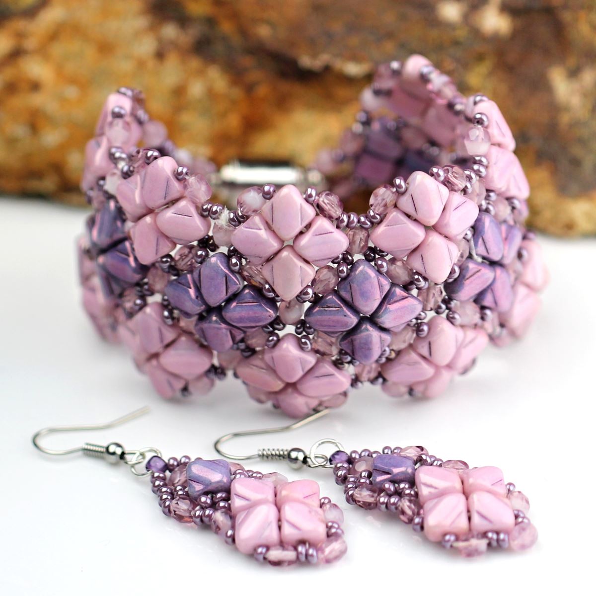 Souprava LEWISIA je vytvořena z korálků SILKY Beads, doplněna bižuterním magnetickým zapínáním se šroubovacím pojistným krytem.