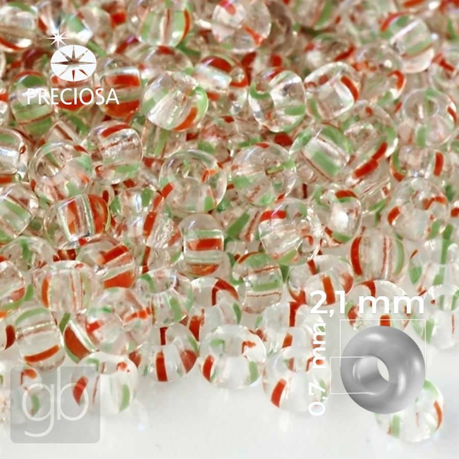 Preciosa STRIPED 11/0 2,1 mm Klar Rot Grün (00950) 20 g