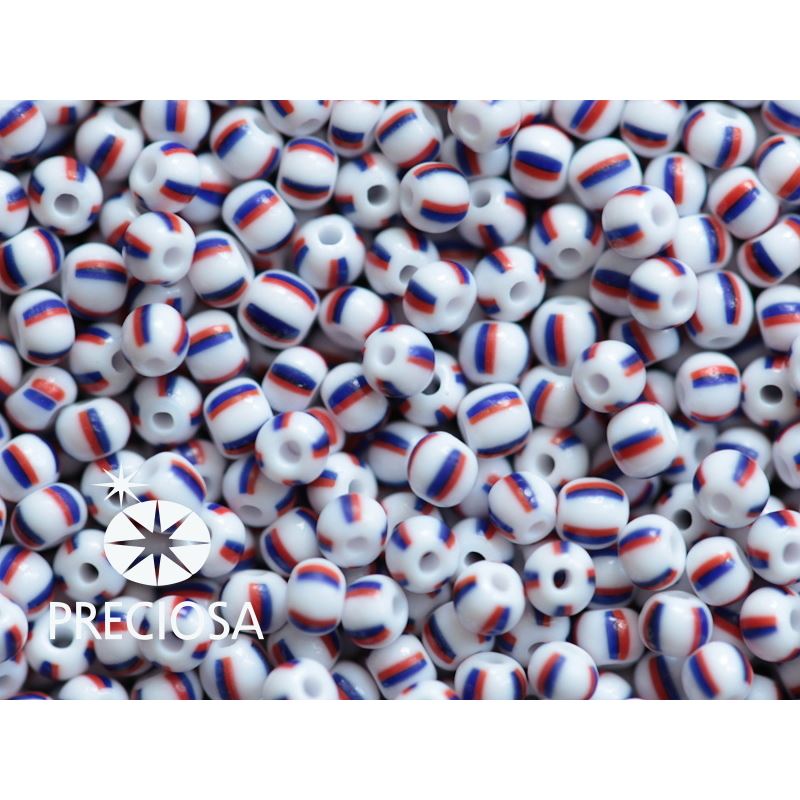 Preciosa STRIPED 8/0 2,9 mm Weiß Rot Blau 03370 50 g