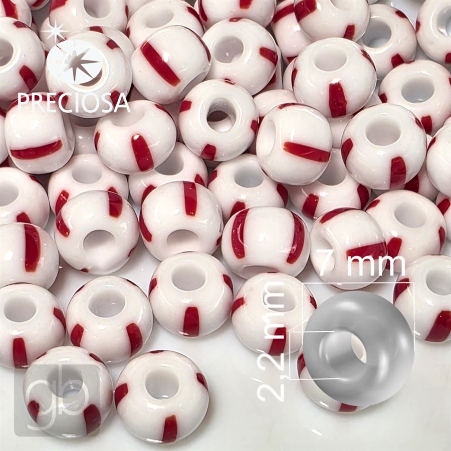 Preciosa STRIPED Rocailles 31/0 7 mm Rot Weiß 03890 50 g